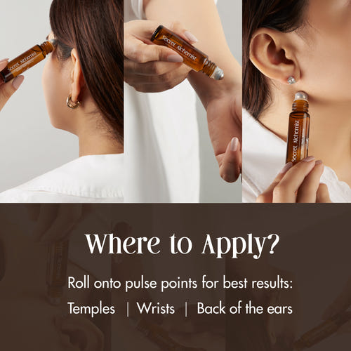 - Roll onto pulse points: wrists, temples, behind the ears, collarbone.