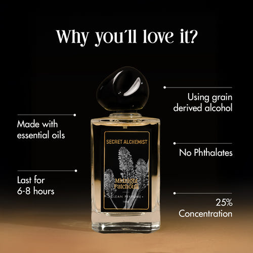 Clean perfumes are made with essential oils and grain-derived alcohol (ours is from wheat), and are free from phthalates, parabens, and synthetic dyes—ingredients linked to hormone disruption. Traditional perfumes often use synthetic fragrances and petroleum-based alcohol, which may contain undisclosed irritants.