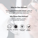 Clean perfumes are skin-safe fragrances made without phthalates, parabens, hexanes, sulfates, and artificial dyes.